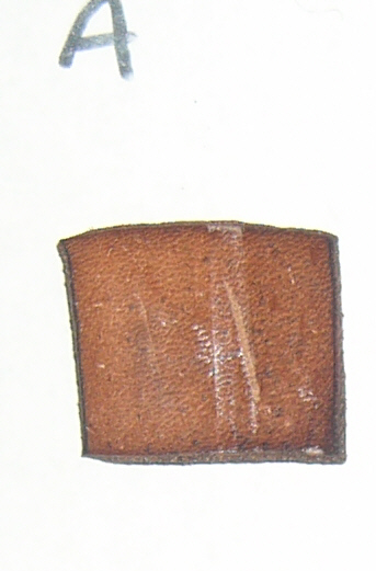 STRENGTH TEST The cuir bouillied materials were allowed to dry for several days. They were then hit with both the front (sharp) edge of a large meat cleaver and the back (blunt) edge of the cleaver - all full strength blows. The blunt edge of the cleaver shows as shiny lines in most cases, actual cuts are from the front edge. N.B. Chrome tanned not strength tested. PHOTO OF CLEAVER TO COME! |