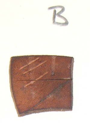 Shrinkage and Strength Test details: B2 - lightly dented by back of cleaver; surface cut with sharp edge. |