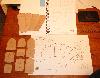Shrinkage and Strength Test details: "Holes" - lightly dented by back of cleaver; cut almost through with sharp edge - suspect largely as size and shape made more fragile than square pieces. Holes punched before prior to boiling remained but were distorted, so decided to test by drilling holes after boiled. (These test holes can be seen in the Second and following Shrinkage tests). |
