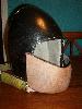 Three-quarters view with faceplate attached and painted. The stitching can be seen here. |
